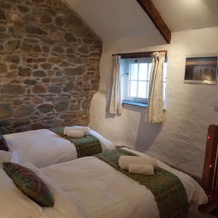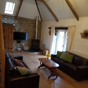 The front door opens into a large lounge complete with wood burner, just made for gatherings. Two bedrooms are accessed from here, a single bedroom with ensuite shower room, and, via an oak staircase, a twin bedroom.