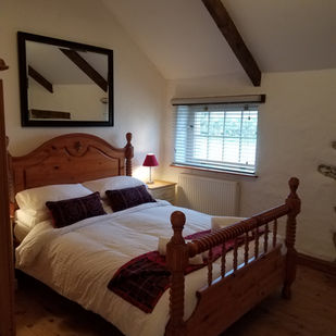 Ty Dewi, originally the milking parlour, was converted to a five bedroom cottage that sleeps 9. the master bedroom has plenty of space for a cot and/or child's bed (we have both available).